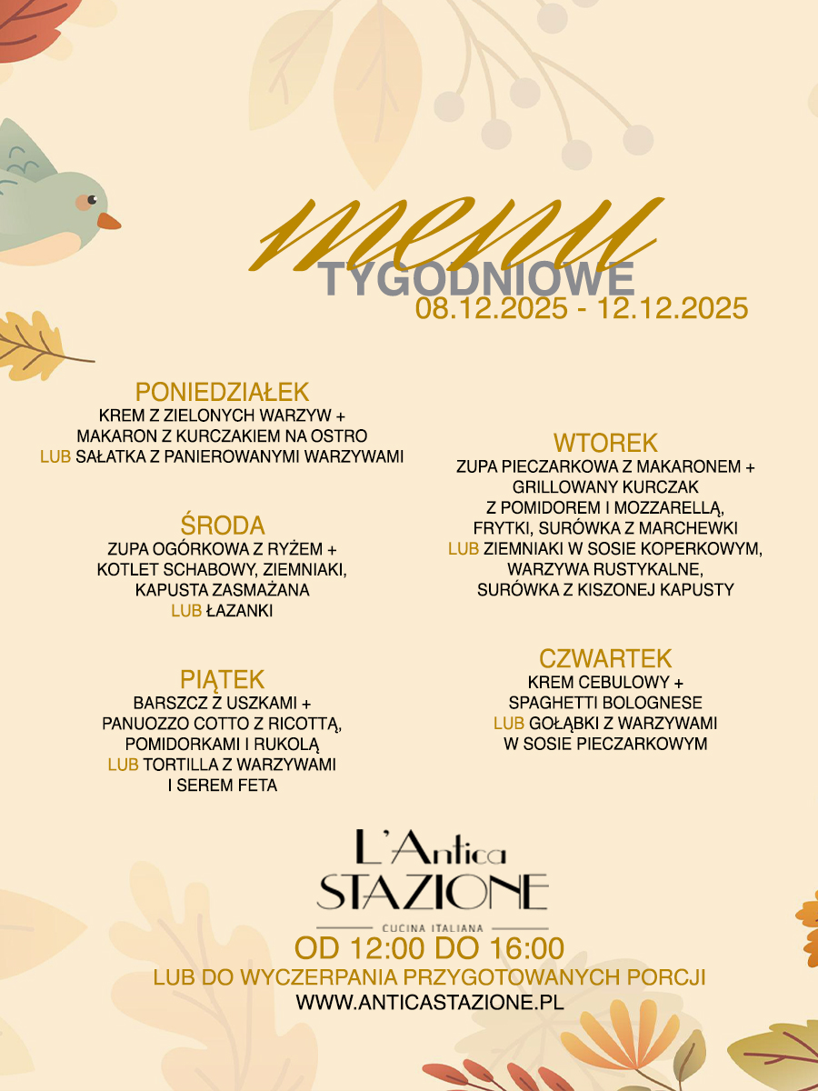 Grudzień rozkręca się na dobre, a my wchodzimy w nowy tydzień z kolejną porcją pysznych lunchy – ciepłych, sycących i idealnych na przerwę w pracy. Zapraszamy, jak zawsze, od 12:00! 🍽️✨